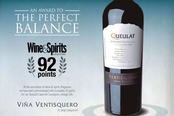 比如,《葡萄酒與烈酒》雜志給這款冰川酒莊寇廬山脈莊園珍藏赤霞珠紅葡萄酒 2011 年份(Ventisquero Queulat Gran Reserva Cabernet Sauvignon)打出了 92 分,在該雜志評分體系中,這款酒可定義為與眾不同的葡萄酒,富有個性。