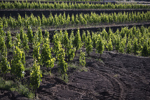 西西里島是意大利重要的葡萄酒產(chǎn)區(qū),其東岸坐落著埃特納(Mount Etna)活火山,噴發(fā)產(chǎn)生的火山巖經(jīng)人力破碎或風(fēng)化后,成為西西里島產(chǎn)區(qū)典型的種植土壤。火山土通常包含玄武巖、灰質(zhì)土以及其他火山巖的風(fēng)化碎片,土壤多孔,排水性和蓄水性良好,能儲存和反射熱量,種植的葡萄樹生長態(tài)勢良好,果實(shí)成熟度佳。此外,火山土中礦物質(zhì)含量較高,含有鎂、鐵和鉀等多種元素,常被認(rèn)為能給葡萄酒帶來煙熏、鐵銹和礦物味。