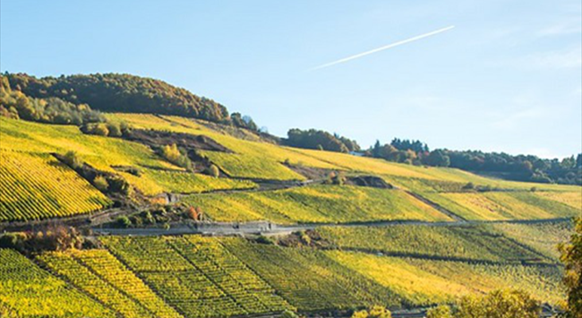 摩澤爾產區地形獨特,河流流經的地區兩側多為陡峭的山坡,產區內的葡萄園就分布在這些斜坡之上。其中,朝南的葡萄園由于能夠獲得最大程度的陽光直射,條件最為優渥。過高的坡度為機械化帶來了很大的難度,因而這里葡萄的種植與采收絕大部分都是靠人工完成的。