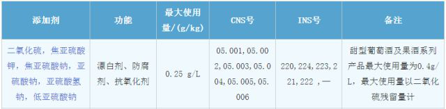 在我國(guó),根據(jù)GB2760-2014規(guī)定,干型葡萄酒中二氧化硫及亞硫酸鹽的最大使用量不得超過(guò)250ml/L,甜葡萄酒不得超過(guò)400mg/L。