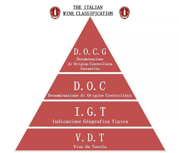意大利的葡萄酒分級制分4個等級,從高到低依次為:DOCG(最高級)、DOC、IGT、VDT(普通等級餐酒)。不過,這個分級制度僅供參考,因為也有很多酒莊認(rèn)為一些規(guī)定太死板,而不搞這套,有時一些意大利頂級葡萄酒竟然只標(biāo)VDT或IGT也不足為奇。