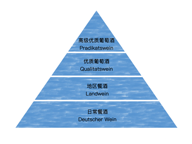 歐盟(EU)對具有地理標志標簽(Geographical Indications,簡稱GIs)的葡萄酒進行保護,分為原產地命名保護(Protected Designation of Origin,簡稱PDO)和地理標志保護(Protected Geographical Indication,簡稱PGI)兩大類,且PDO比PGI有著更嚴格的規(guī)定。德國葡萄酒也適用于這一法規(guī),所有葡萄酒被分為以下4個等級: