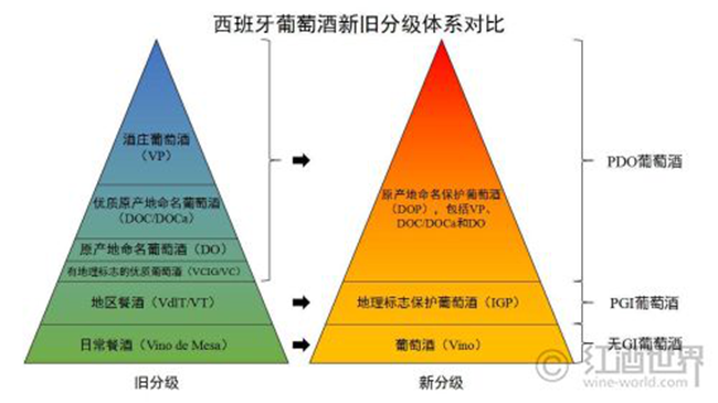早在1932年,西班牙就仿照法國的原產地命名控制(Appellation d’Origine Controlee,簡稱AOC)制度,創立了原產地命名(Denominacion de Origen,簡稱DO)制度。2003年,西班牙在原有制度的基礎上,又建立了類似法國的葡萄酒分級體系。這一體系從低至高共分為6級: