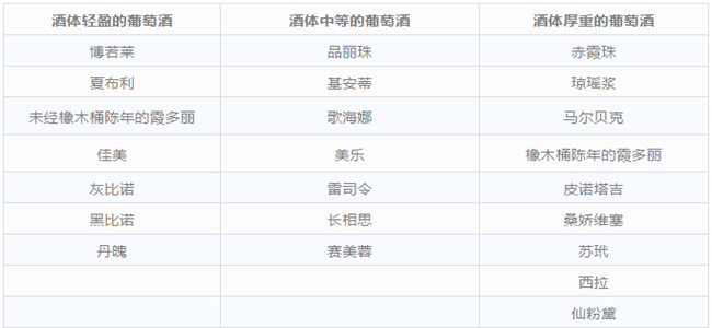 那么,究竟哪些葡萄酒屬于酒體輕盈的葡萄酒,而哪些又屬于酒體厚重的葡萄酒呢?
