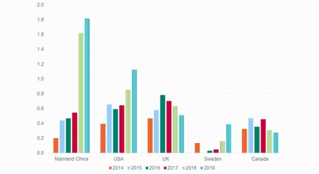 從對全球的出口價格來看,價格高于10澳元每升的歌海娜表現尤為突出,出口額從2014年的120萬澳元增長至2019年的400萬澳元,這一價格區間的歌海娜出口額占據了所有價格區間的歌海娜總出口額的72%。