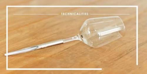 這款紅酒杯的上端設(shè)計(jì)和大家日常使用的紅酒杯相同,只不過(guò)在下端進(jìn)行了創(chuàng)新設(shè)計(jì)。在酒杯的底部,并不是傳統(tǒng)底座式設(shè)計(jì),而是采用了類似于針尖的形狀。