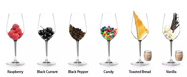 不同類型的葡萄酒都有一個“主導”的味道,例如: