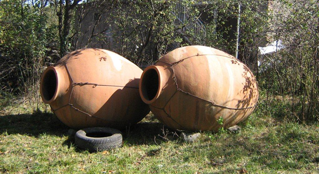 由于三種陶罐的底座相比瓶身都比較窄小,在使用過程中,人們常常將陶罐埋在地下,只留一截開口在外,以保持罐體的穩定性。埋入地下并封閉開口后,陶罐中的葡萄汁可在罐內發酵并陳釀數年。由于陶罐的透氣性佳,能使酒液與氧氣充分接觸,因此能夠賦予葡萄酒非常復雜的陳釀香氣,如堅果、巧克力和烘烤水果香氣等。因為產量極低,如今陶罐葡萄酒一瓶難求,但有些酒莊開始了“復古”的嘗試,只要細心尋找,還是能邂逅一些返璞歸真的陳年美酒。
