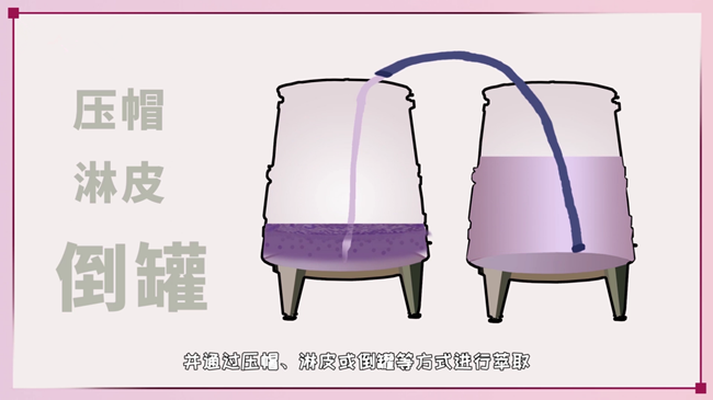 ② 淋皮(Pumping Over):利用泵將發酵中的葡萄汁從發酵罐底部抽至頂部往下淋,將酒帽淋透。