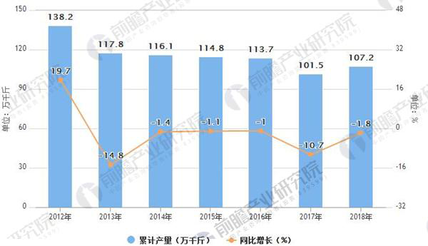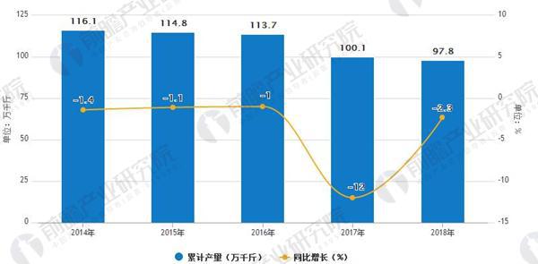 具體來看,2016年全國葡萄酒產(chǎn)量達(dá)113.7萬千升,同比下滑1%。預(yù)計2018年中國葡萄酒產(chǎn)量將下滑至107.2萬千升。