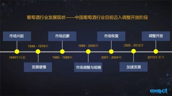 從產(chǎn)業(yè)發(fā)展的角度看,中國葡萄酒產(chǎn)業(yè)發(fā)展主要經(jīng)歷了7個階段,目前可以看出已邁入調(diào)整開放階段。