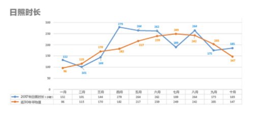 一月 多數(shù)時(shí)間氣候干燥,日照充盈,降雨量不夠充沛。日照時(shí)間相較于季度平均值多出37小時(shí)。