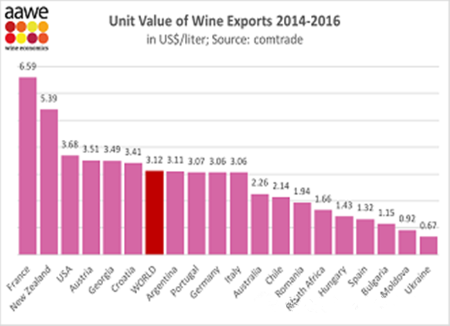 AAWE - 美國葡萄酒經(jīng)濟學家協(xié)會是一個享有聲望的組織,根據(jù)他們的評級,法國排名第一(6.59美元),其次是新西蘭(5.39美元),美國排名第三(3.68美元)。奧地利領先格魯吉亞,排名第四(3.51美元)。