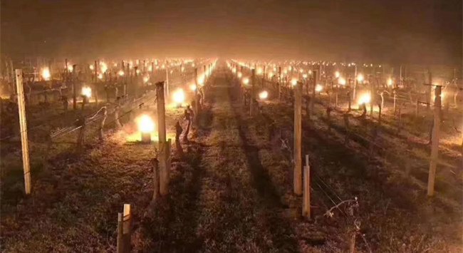 為避免已經開始發芽的葡萄遭受低溫侵害,數以百計的人們在葡萄園內用草生火,并使用燃燒的火盆來抵抗霜凍。