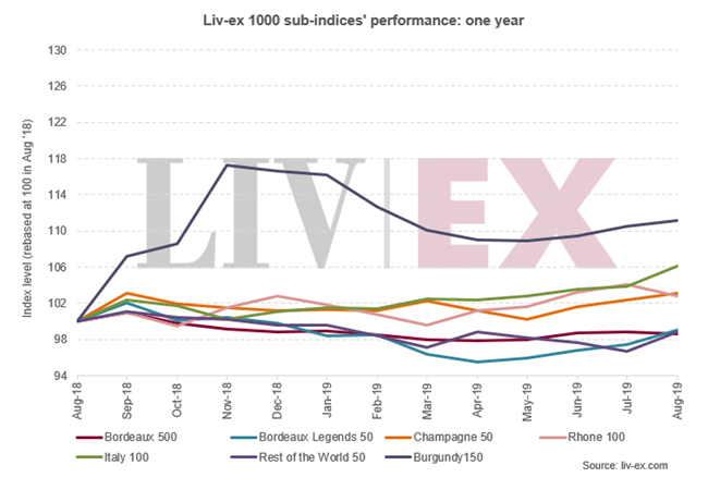 Liv-ex 1000指數(shù)是使用Liv-ex 中間價(jià)格Mid Price來(lái)跟蹤世界不同酒區(qū)1,000款葡萄酒的價(jià)格表現(xiàn)。該指數(shù)是市場(chǎng)最廣泛的衡量標(biāo)準(zhǔn),由7個(gè)分項(xiàng)指數(shù)組成:波爾多500、波爾多傳奇50、勃艮第150、香檳50、羅納100、意大利100和世界其它酒區(qū)50。