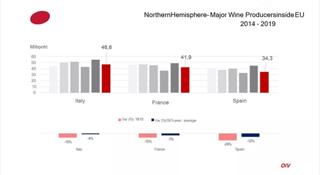 西班牙年產量降低24%,降幅最為明顯,法國意大利緊隨其后,降幅均為15%。