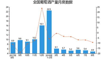 2018年1-8月全國葡萄酒產(chǎn)量統(tǒng)計分析