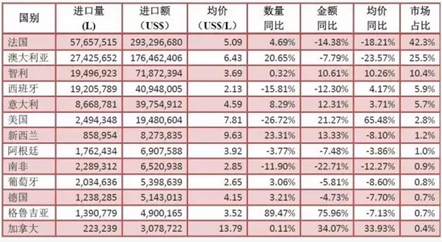 2017年1-4月進口葡萄酒數據:略微下降